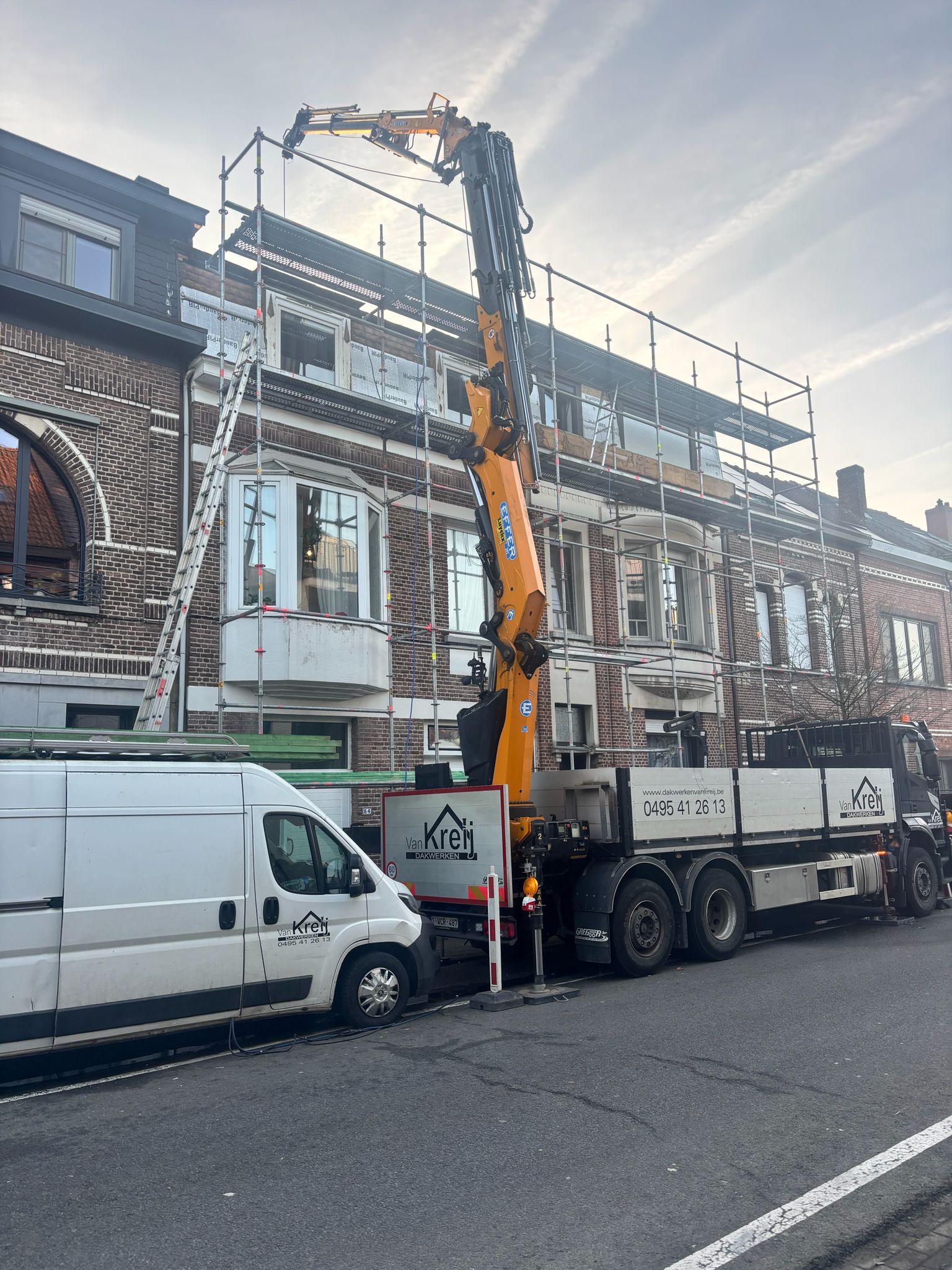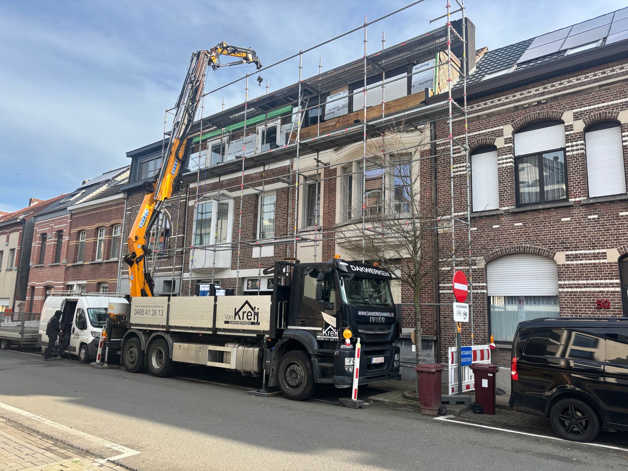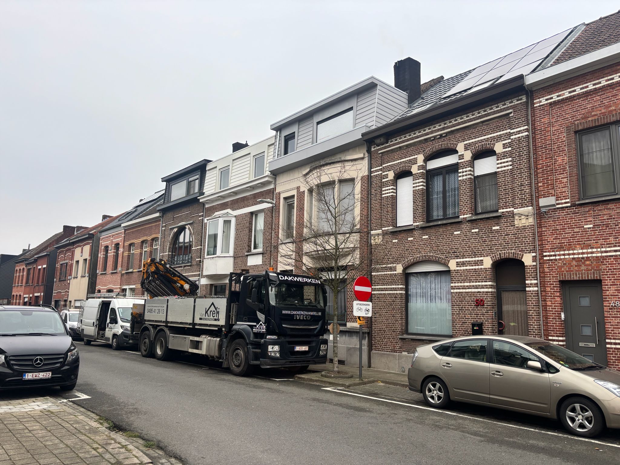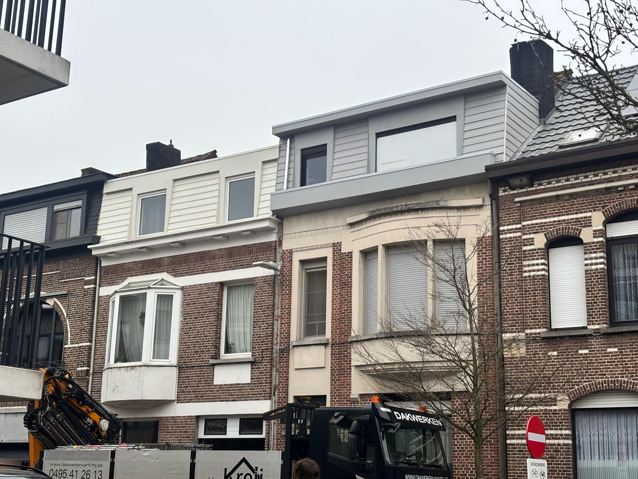 Van Kreij Dakwerken voerde in Schoten een gerichte renovatie uit waarbij de gevelbekleding en dakranden volledig werden vernieuwd. De bestaande afwerking was verouderd en deels beschadigd en bevatte bovendien asbesthoudende leien. Dankzij een veilige demontage, nieuwe isolatie en een duurzame afwerking met Cedral sidings kreeg de woning opnieuw een frisse, moderne uitstraling